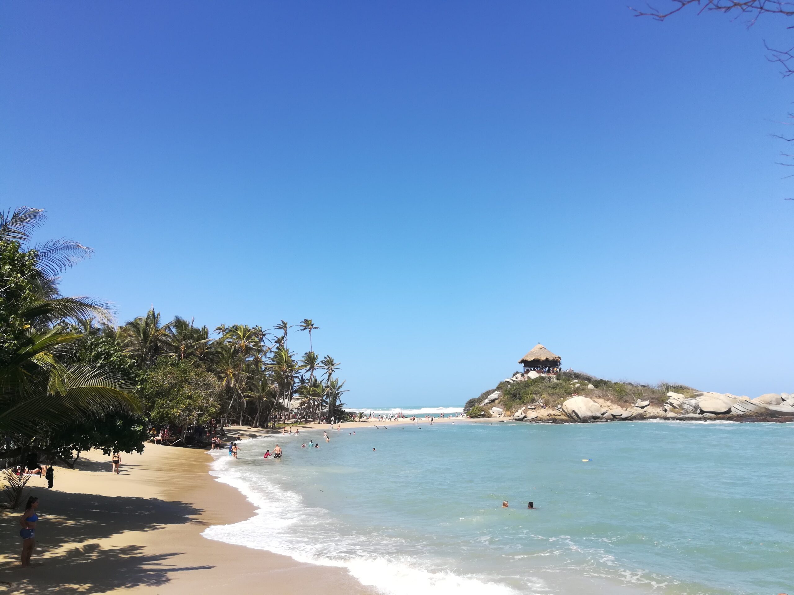 Las playas de Taganga no se caracterizan por ser grandes y amplias. De hecho, la llamada «Playa grande» de Taganga es más chica que cualquiera de la costa argentina. De todas formas, está ubicado en una especie de bahía, por lo que el agua de mar es como una pileta, que también hay que decir es bastante transparente. Aunque también es bastante fría. Aún así agua fría con tanto calor viene bien.